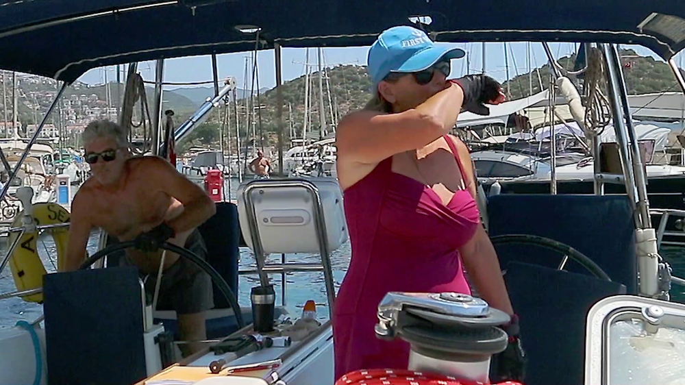 to see next is us bringing A B Sea into the berth at Kaş marina, we've done it plenty of times